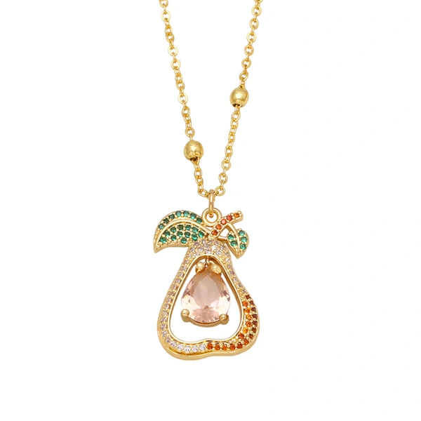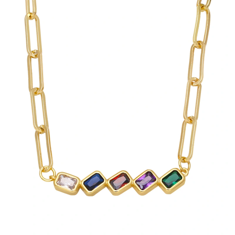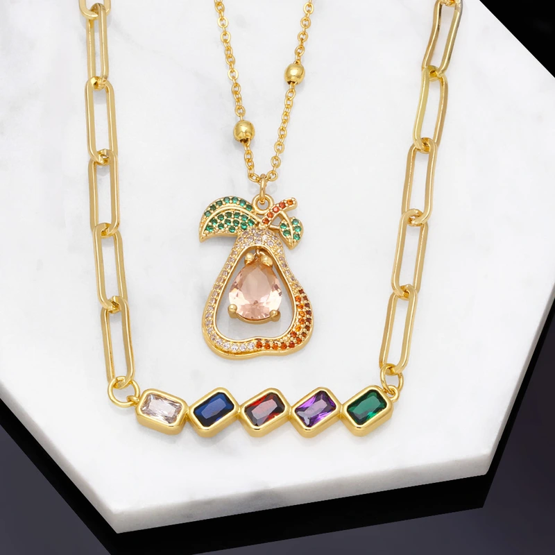 Collar de cadena gruesa geométrica con microincrustaciones de circonitas de colores, collar de frutas, estilo celebridad, NKB303.