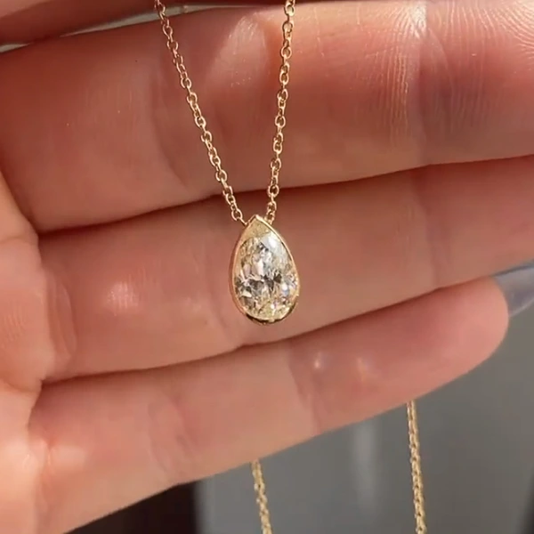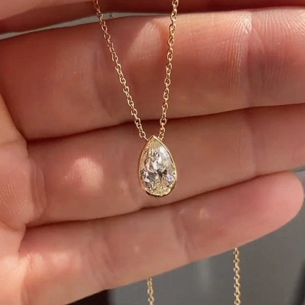 Collar de circonita con forma de pera y gota de agua, muy vendido en Europa y América, para mujer, colgante de lujo para cena de boda o novia.