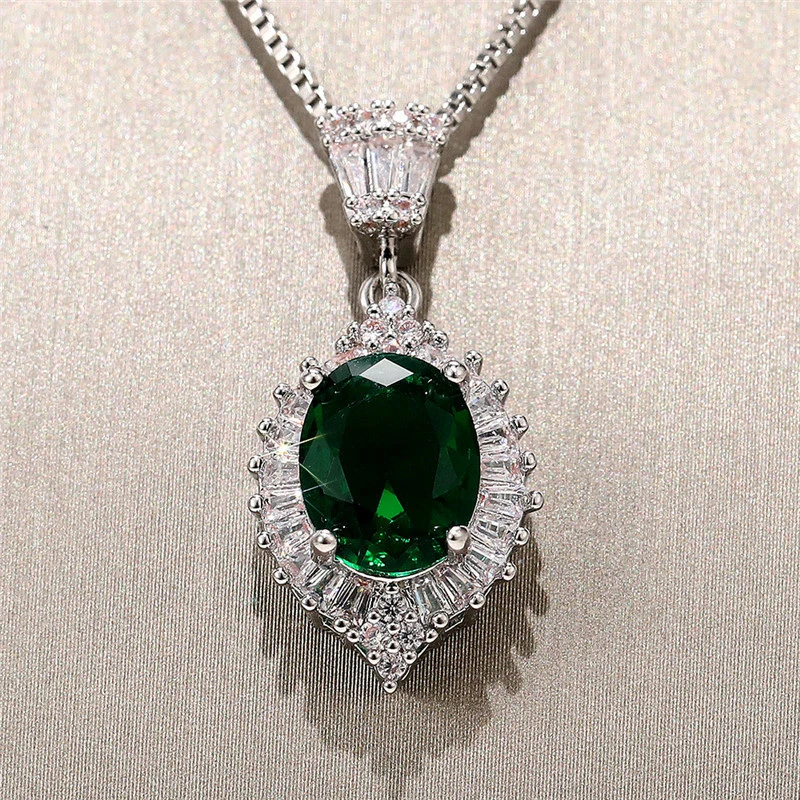Collar de circonita esmeralda elegante, estilo retro, para cena de compromiso, con transmisión en vivo de celebridades de Internet.