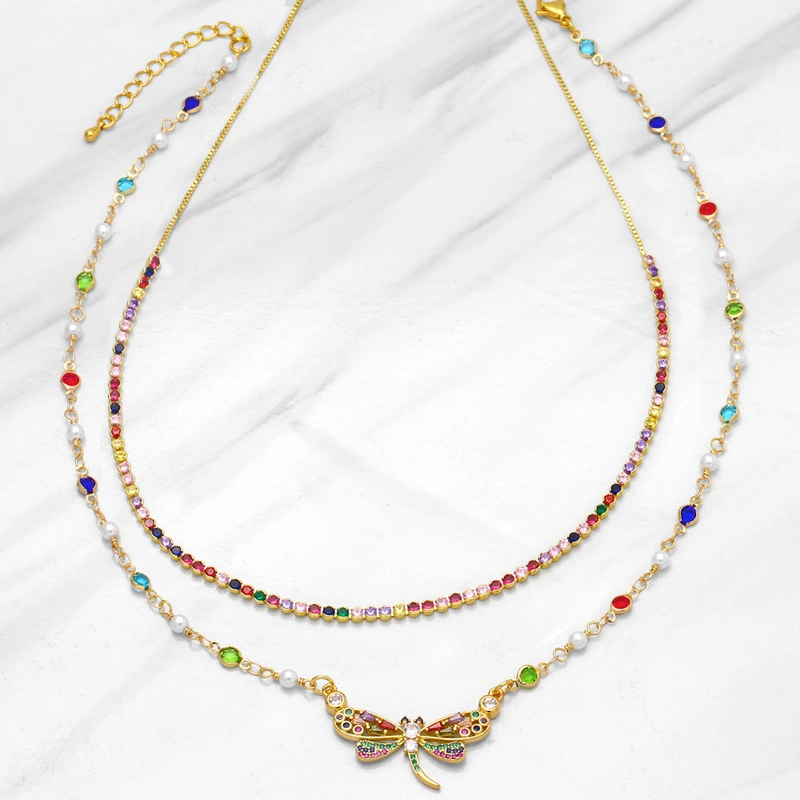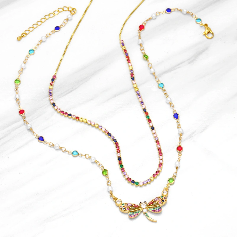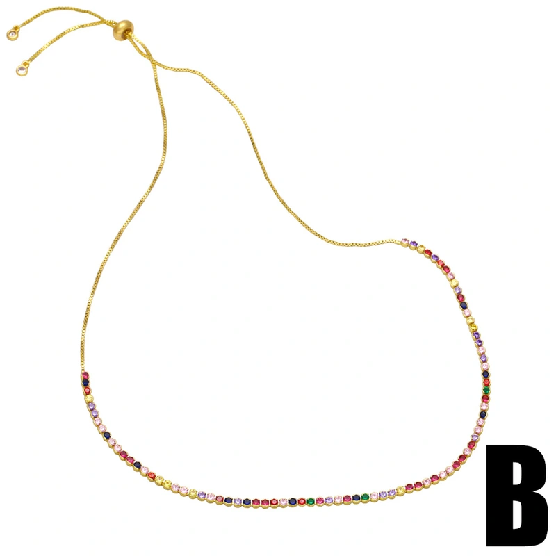 Collar de circonitas de colores en liquidación para mujer, diseño de nicho europeo y americano, cadena de clavícula, gargantilla, venta al por mayor, nkb237