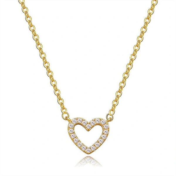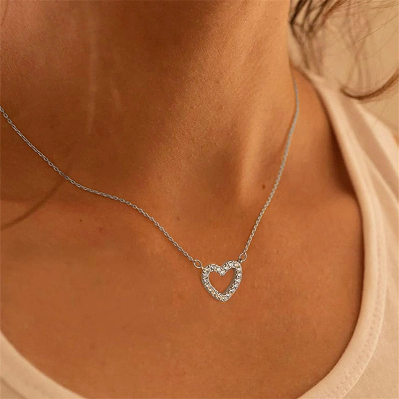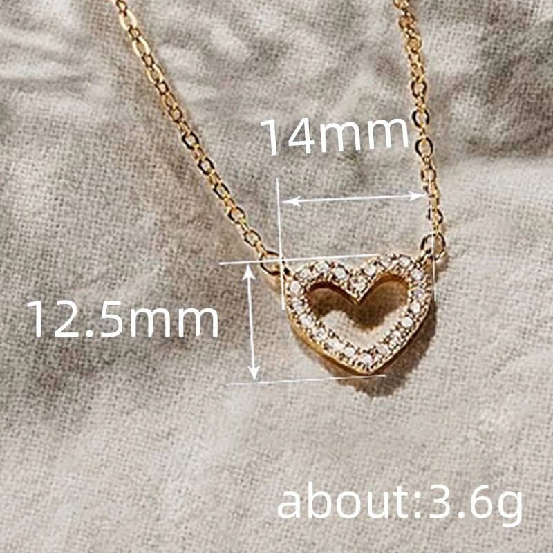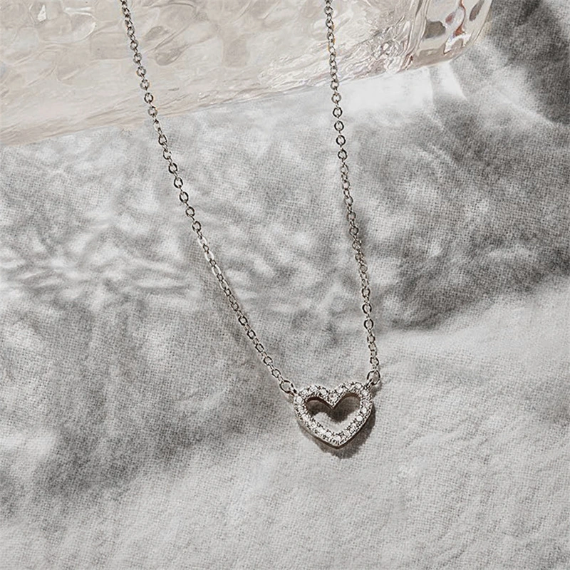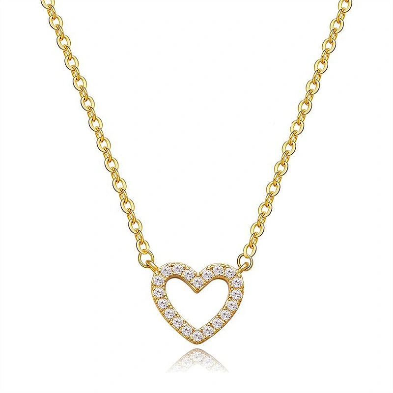 Collar de corazón hueco de gran venta con microincrustaciones de circonitas brillantes, joyería dulce para uso diario.
