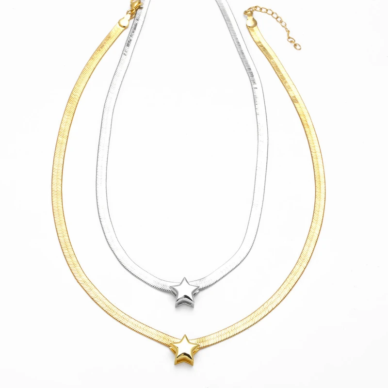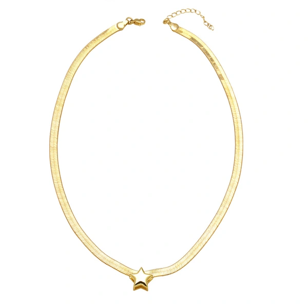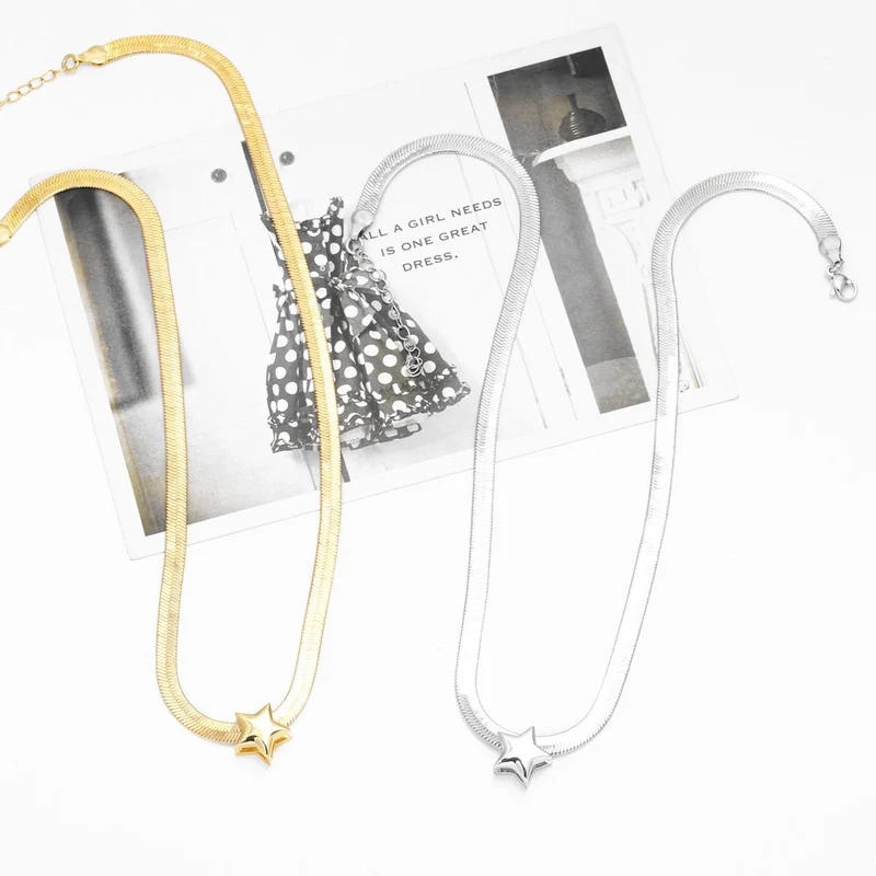 Collar de estrella de cinco puntas para mujer, chapado en cobre, oro de 18 quilates, cadena de serpiente, nks82
