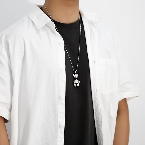 Collar de hip hop con colgante de oso de metal para hombre, cadena larga con personalidad, estilo suéter, nkz55