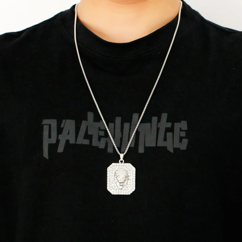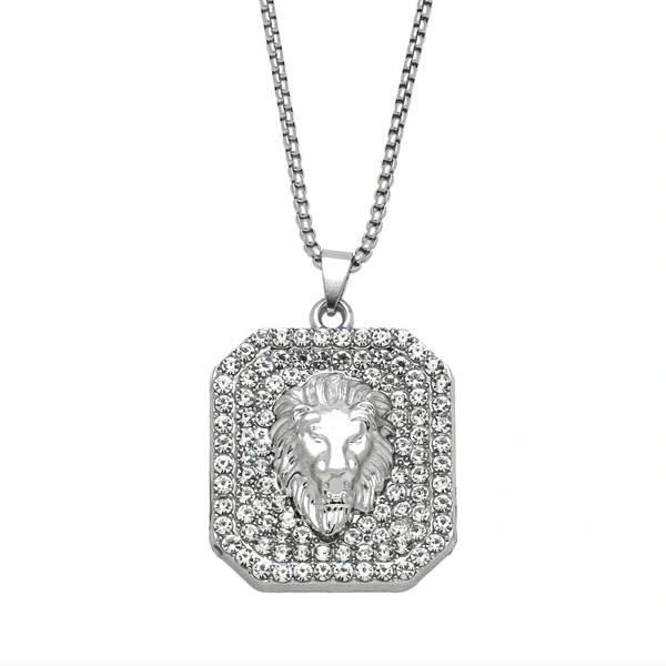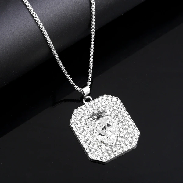 Collar de hip-hop de acero inoxidable para hombre, con personalidad dominante, colgante de león de diamantes, cadena de suéter nkt31