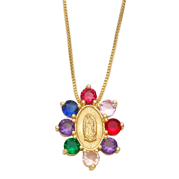 Collar de la Virgen María con circonitas de colores en liquidación (NKB213)