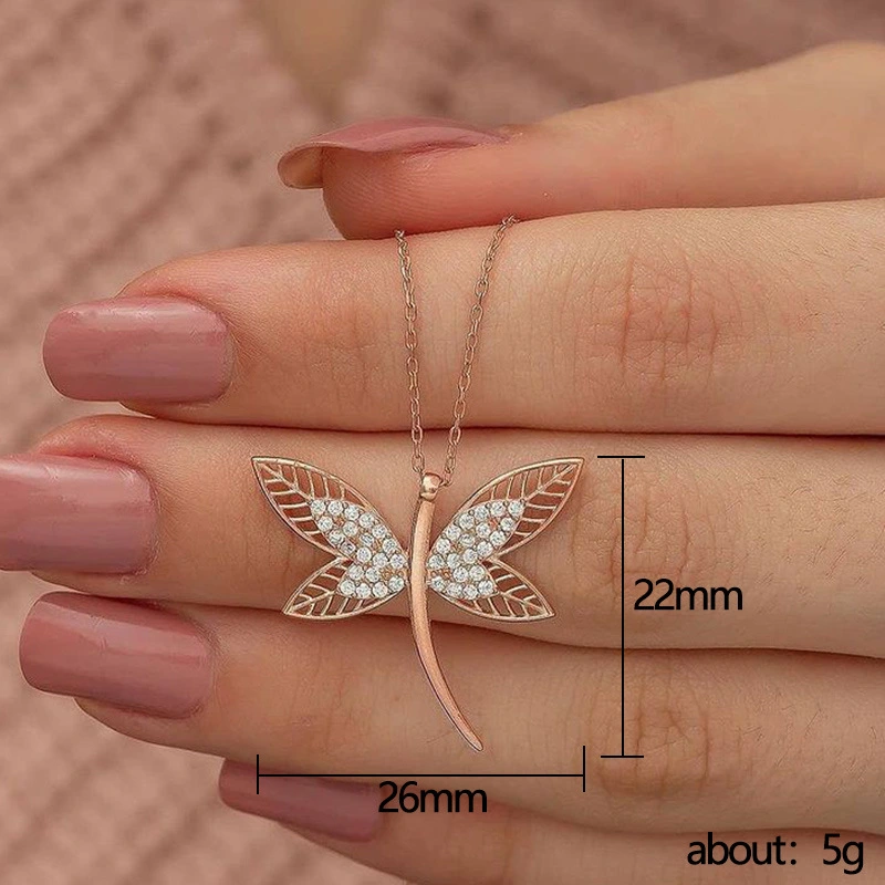 Collar de libélula hueca de oro rosa, nueva y popular moda, cadena de clavícula para estudiantes.