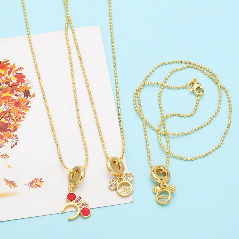 Collar de Mickey Mouse, moderno y atractivo, con colgante de circonita con incrustaciones de oro de 18 quilates, estilo europeo y americano, NKB357