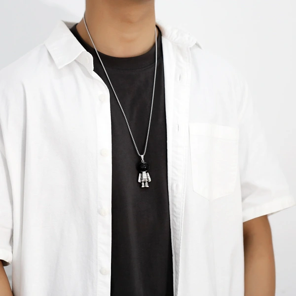 Collar de pareja de astronautas de hip-hop europeo y americano con personalidad, cadena de suéter con colgante de astronauta a juego para hombres y mujeres nkz88