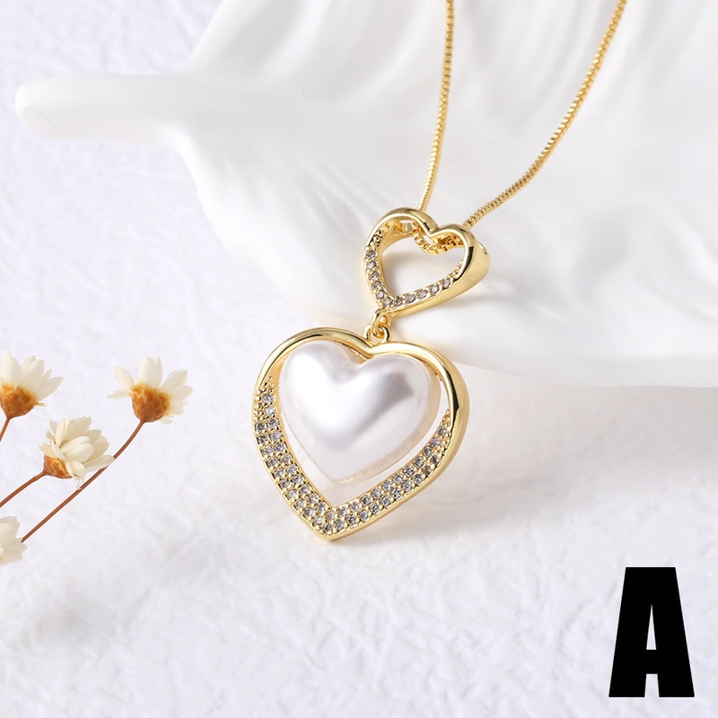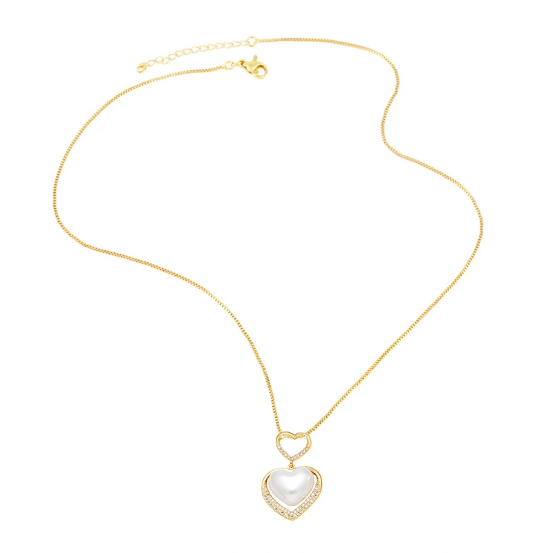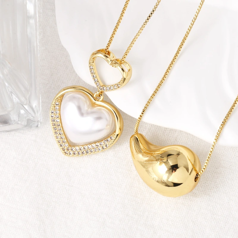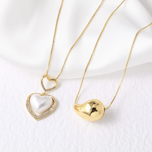 Collar de perlas con forma de corazón y gota de agua para mujer, chapado en oro, NKB355