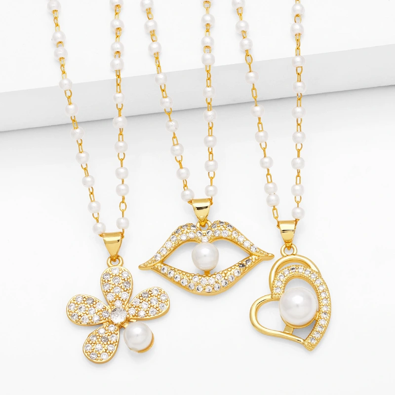 Collar de perlas de labios de estilo europeo y americano, estilo nicho femenino de alta gama, cadena de clavícula con flores de amor nkq27