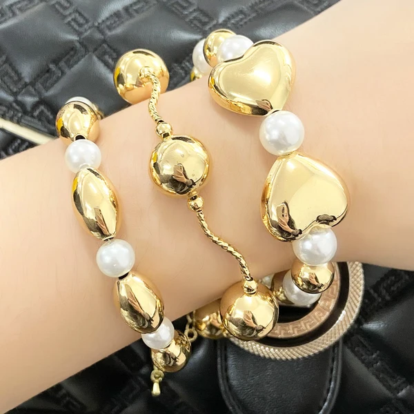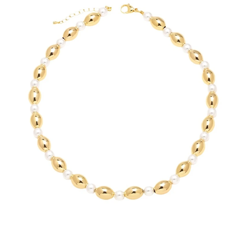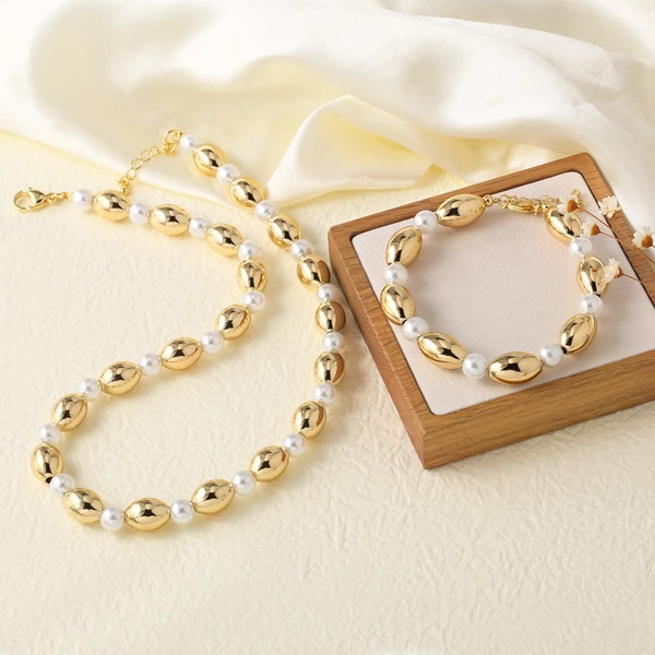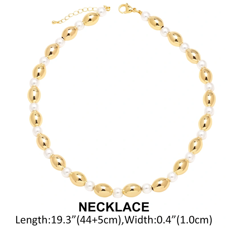 Collar de pulsera de cuentas redondas con espaciador de perlas para mujer, chapado en cobre y oro de 18 quilates, NKU64