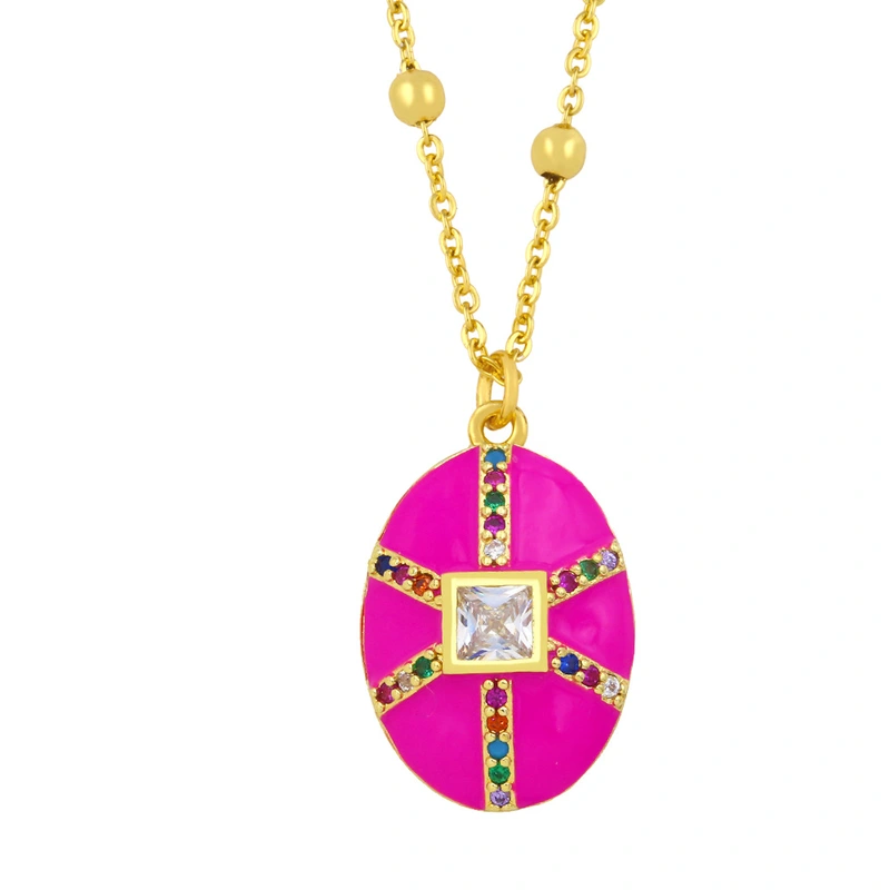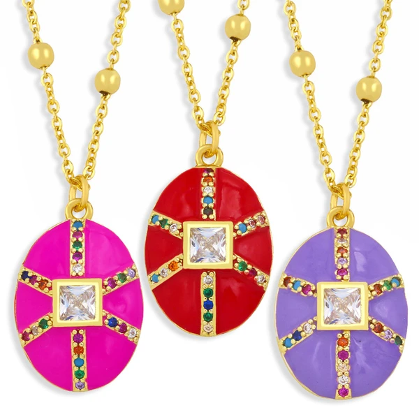 Collar geométrico redondo con microincrustaciones de diamantes y circonitas de colores, estilo europeo y americano, en liquidación, NKZ68.