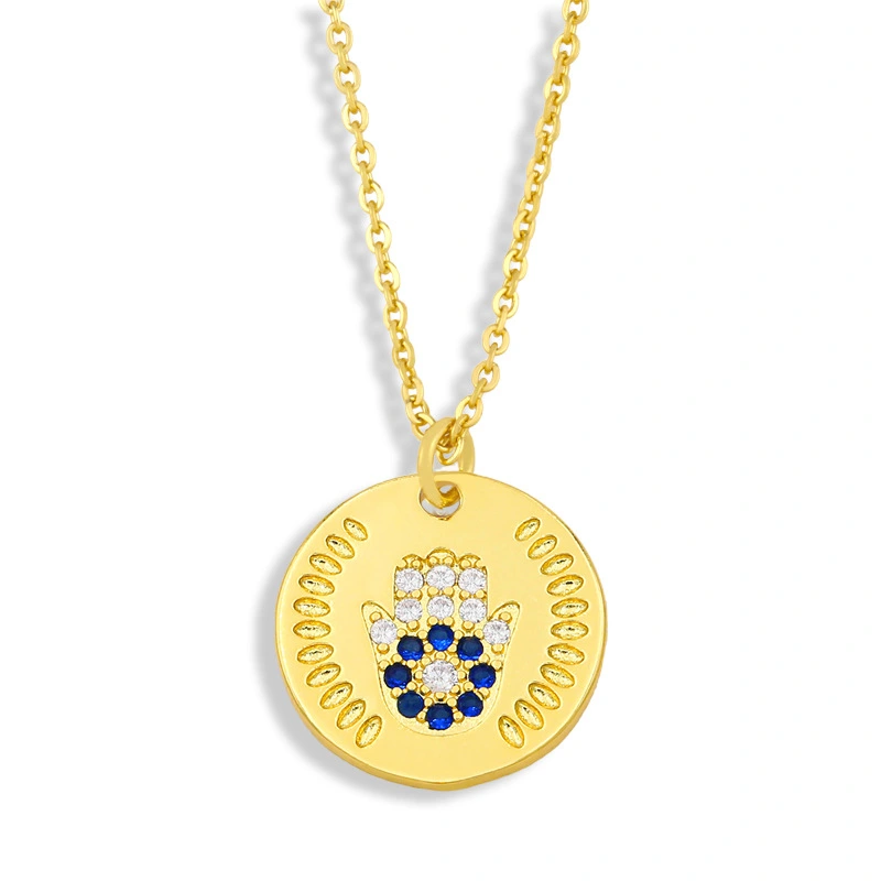 Collar redondo con colgante de ojo de diablo y palma de hip-hop para mujer, estilo celebridad de internet europea y americana, cadena para clavícula, NKU23.