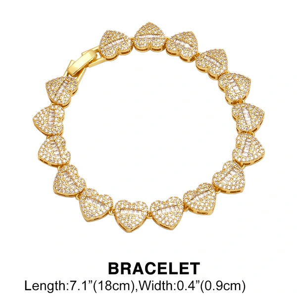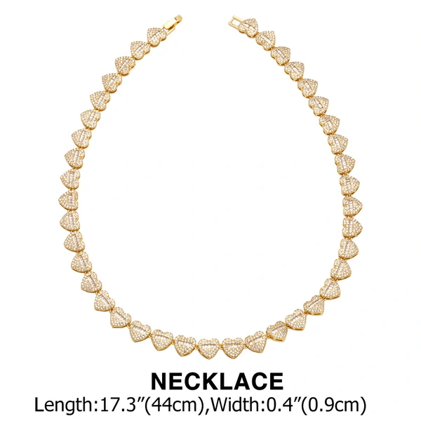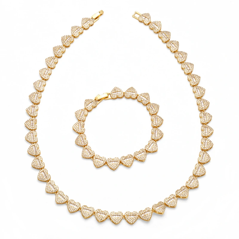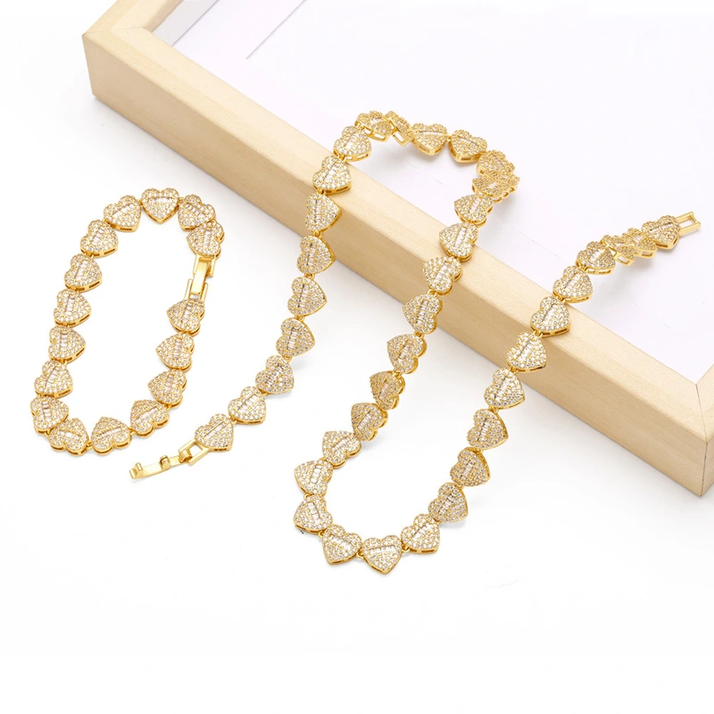 Collar y pulsera chapados en oro con forma de corazón de amor de alta gama con diamantes, joyería de gran venta, nks19