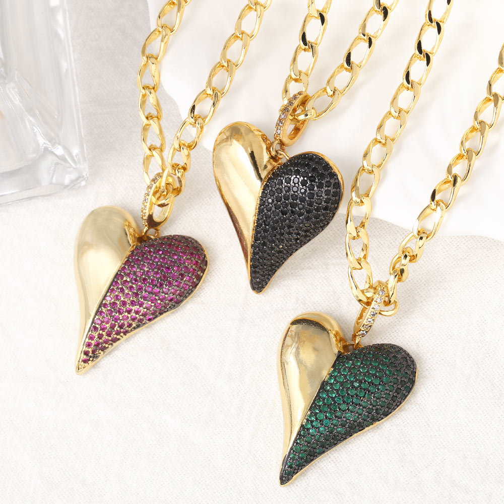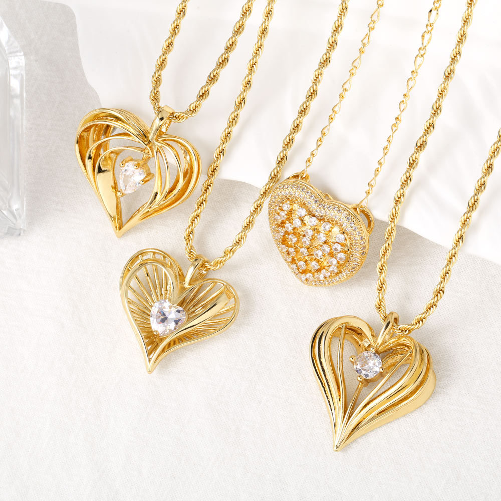 Collar con colgante de corazón de amor con incrustaciones de circonitas, chapado en cobre y cadena de clavícula de oro de 18 quilates (NKB588)