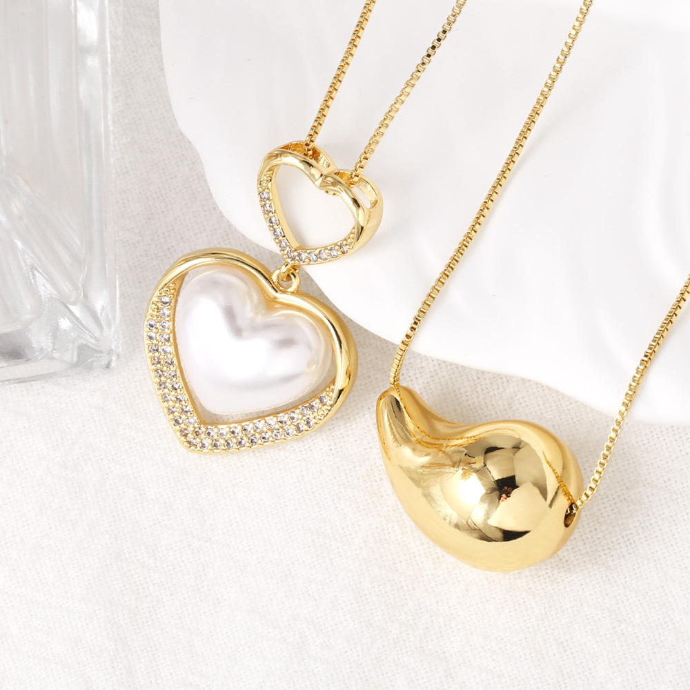 Collar con colgante de corazón de amor, estilo europeo y americano, chapado en cobre, cadena de clavícula de oro de 18 quilates, NKB479