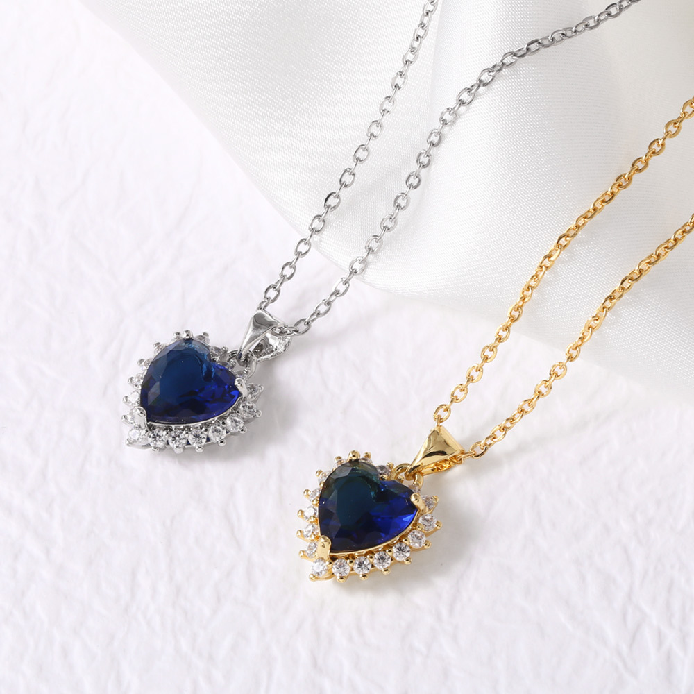 Collar con colgante de zafiro en forma de corazón, joyería femenina, chapado en oro, cadena de clavícula nkt68.