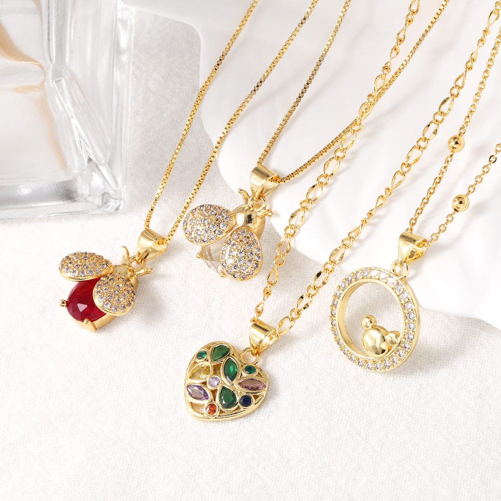 Collar sencillo de amor hueco con colgante de cadena de clavícula con insectos de color dorado, estilo joya nkb684