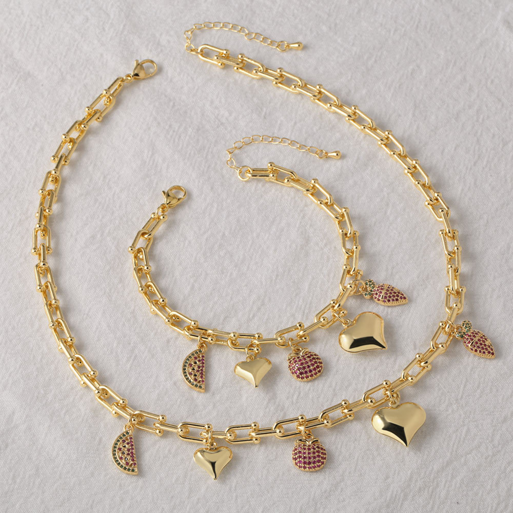 Collar chapado en oro con colgante de sandía y corazón de melocotón brillante, cadena de clavícula para mujer, nkb478