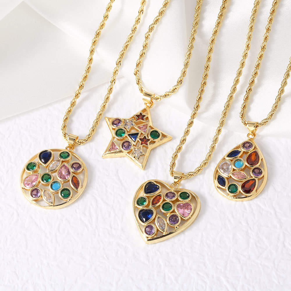 Collar con colgante de niño con circonitas de colores incrustadas en forma de corazón, cadena de clavícula nkq98