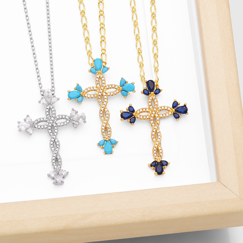 Collar con colgante de circonitas de colores con incrustaciones europeas y americanas, collar con cruz de personalidad creativa, cadena de clavícula femenina nkb807