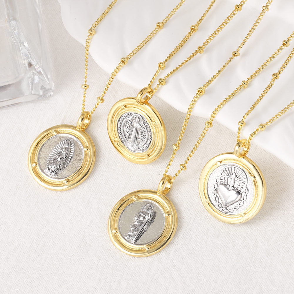 Collar con colgante de la Virgen María, bañado en cobre y oro de 18 quilates, cadena de clavícula para mujer, NKN31.