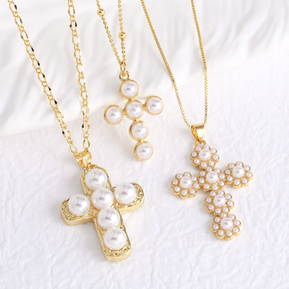 Collar con colgante de circonita con incrustaciones de cruz de perla como joyería, cadena de clavícula nka079necklace