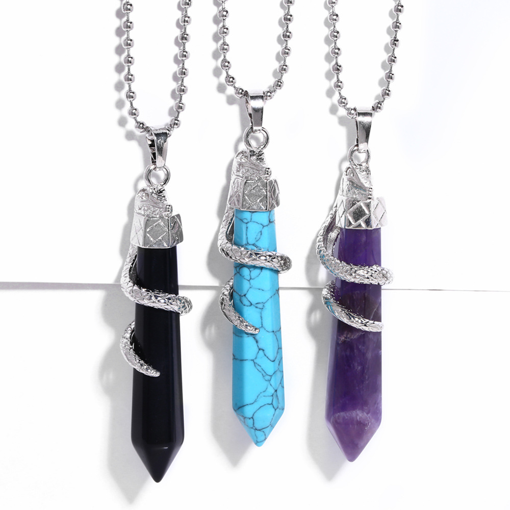 Colgante de bala de ágata de cristal de piedra en forma de serpiente, collar de columna hexagonal envuelto, NKB611