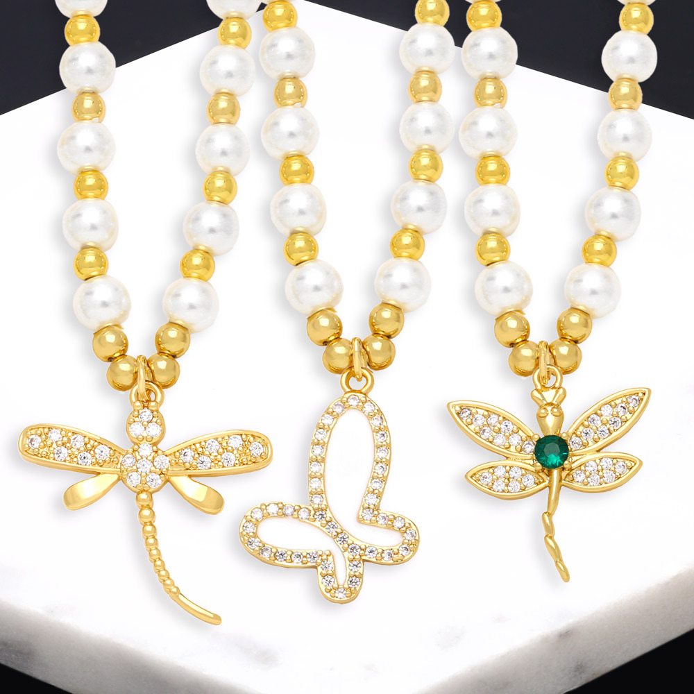Collar de perlas de viento para mujer, temperamento versátil, collar sencillo, colgante de mariposa y libélula, cadena de clavícula nkb622