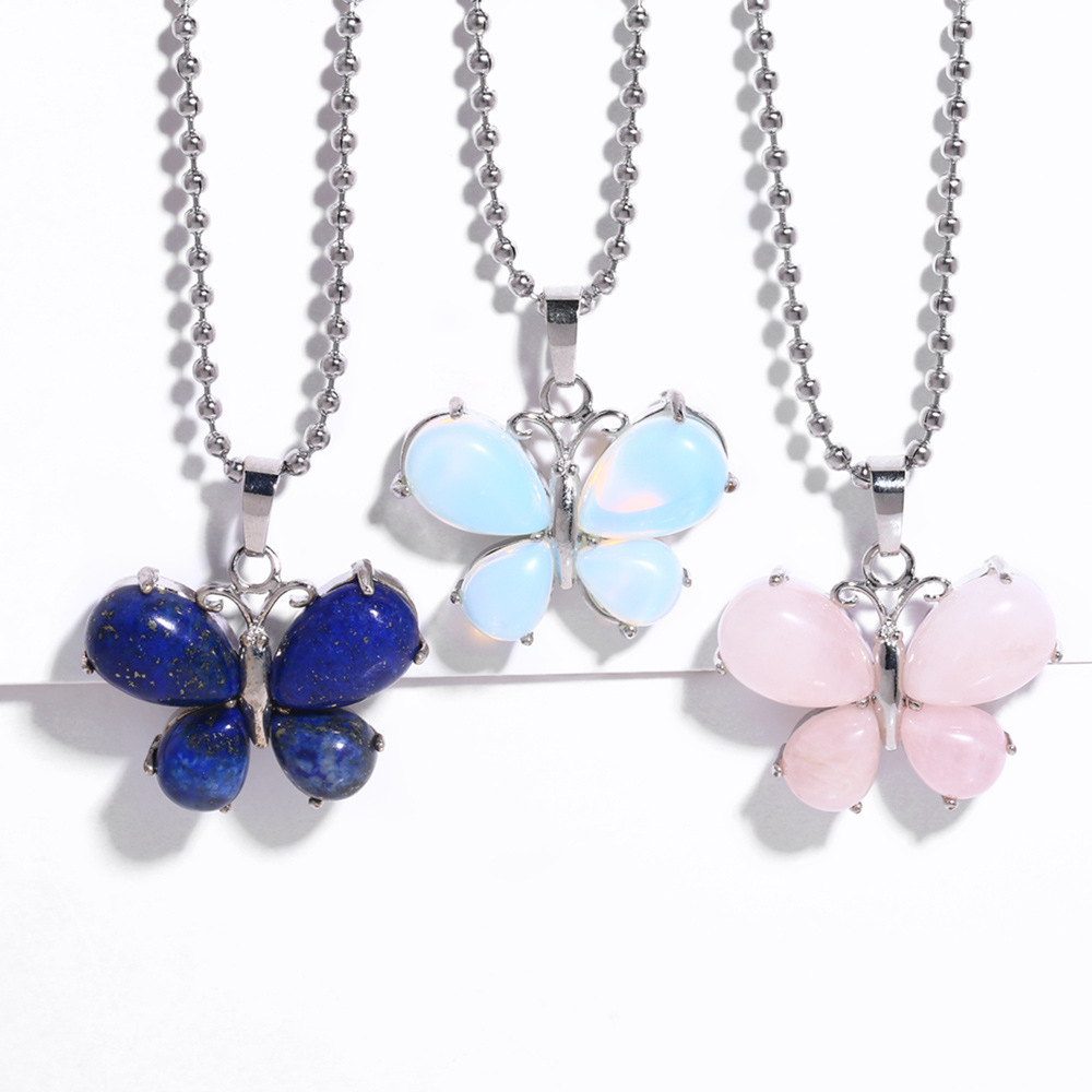 Collar de mariposa de ágata de cristal para mujer, novedad de 2023, collar con colgante europeo y americano, venta al por mayor, nkb612