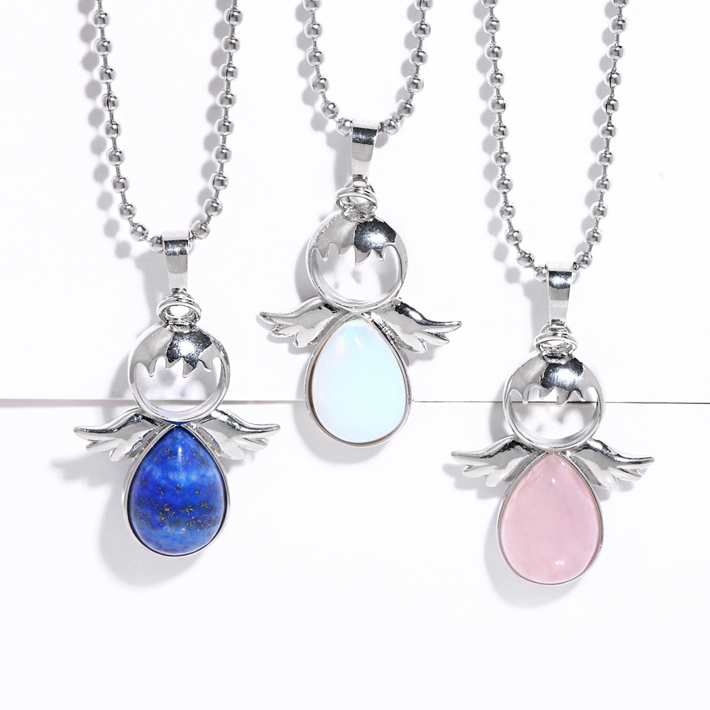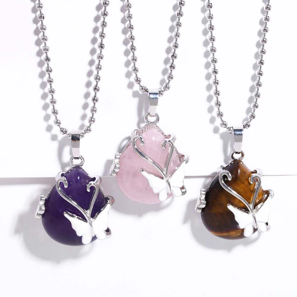 Collar de mariposa con forma de gota de agua de ágata de cristal, joyería europea y americana, colgante de moda retro para mujer, venta al por mayor, nkb632