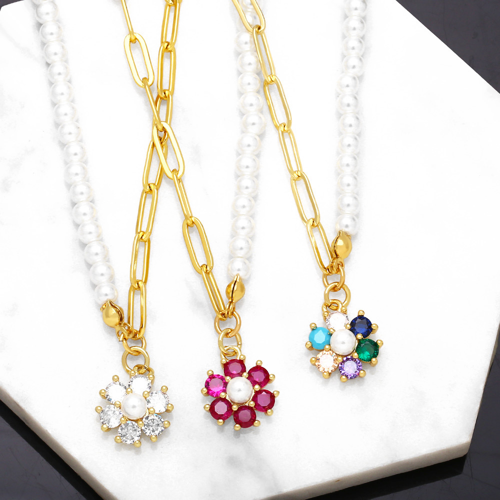Collar de perlas y flores con estilo callejero europeo y americano, estilo moderno y elegante, con temperamento femenino, cadena de clavícula nkb619