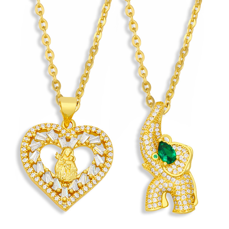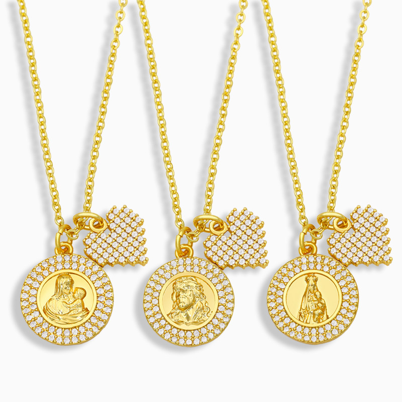 Collar con colgante de la Virgen María con diamantes en forma de corazón, joyería para mujer, accesorios religiosos europeos y americanos, nkw09