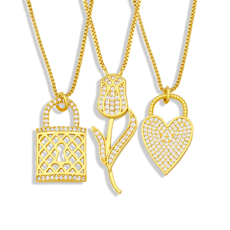 Collar de cadena gruesa europea y americana con diseño de nicho en liquidación, collar con candado de arcoíris y cadena de clavícula Madonna con diamantes NKV87.