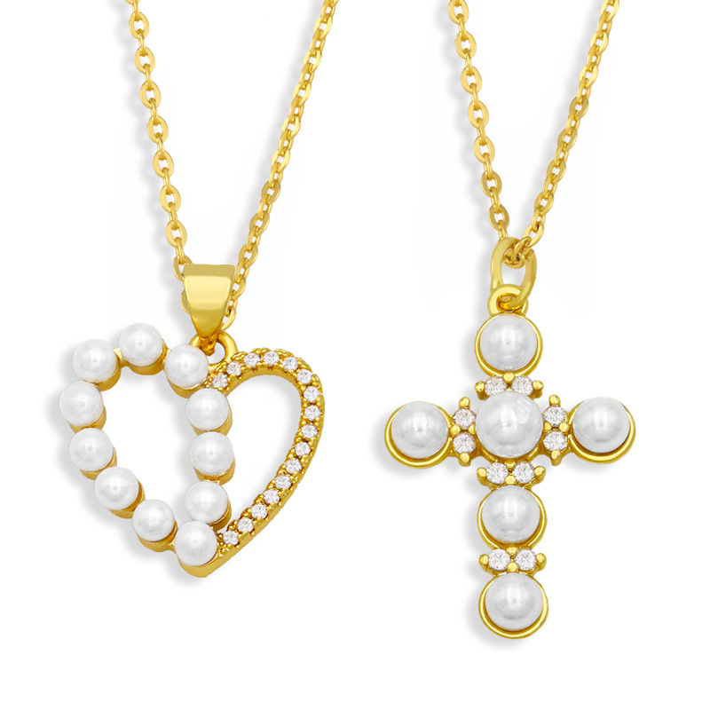 Collar con colgante de cruz de perlas y circonitas de colores con incrustaciones de moda europea y americana, estilo celebridad, NKU40