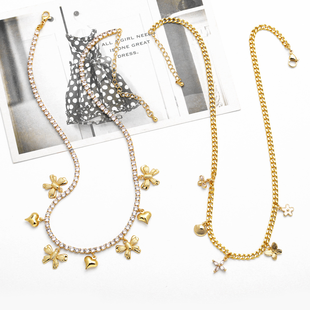 Collar con colgante de mariposa de amor, joyería europea y americana, con cadena de clavícula con flor de circonita bañada en oro, talla nky50.