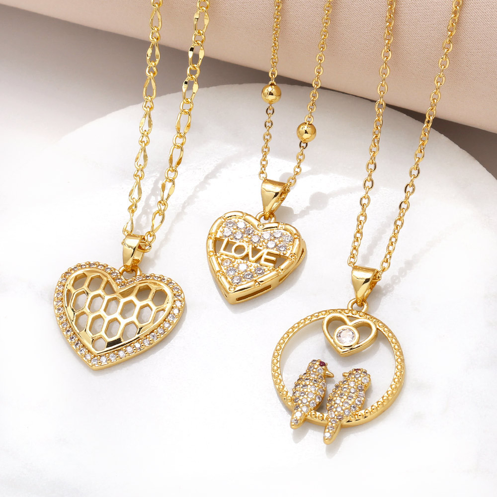 Collar con colgante de amor, chapado en oro, con circonitas y cadena de clavícula, estilo pájaro, NKB094, muy vendido en Europa y Estados Unidos.