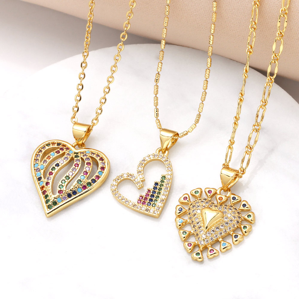 Collar con colgante de corazón de amor, joyería de gran venta, cadena de clavícula con circonitas de colores chapadas en oro, nka017
