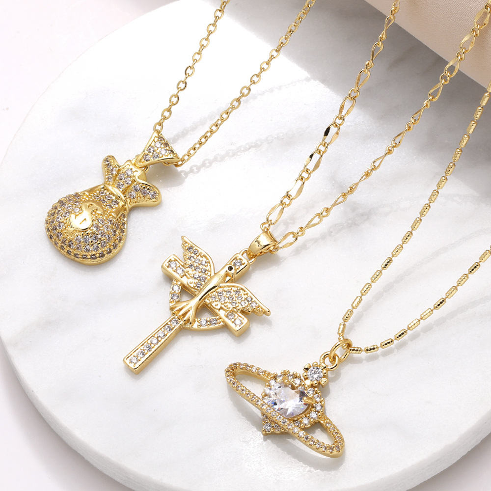 Collar con colgante de cruz, joyería de gran venta, chapado en cobre, pulsera de oro auténtico, collar nky66