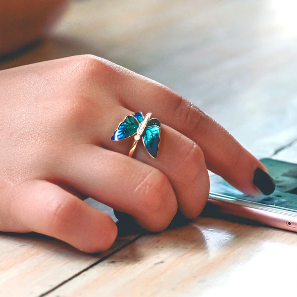 Comercio electrónico, nueva moda, estética, creativa, mariposa, anillo para mujer, gota de pegamento, galvanoplastia, incrustaciones de circonita, joyería al por mayor