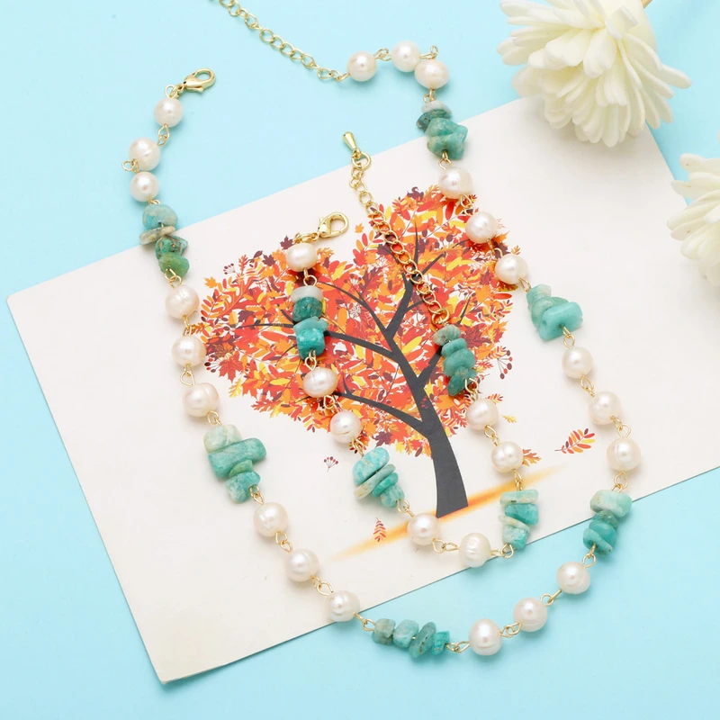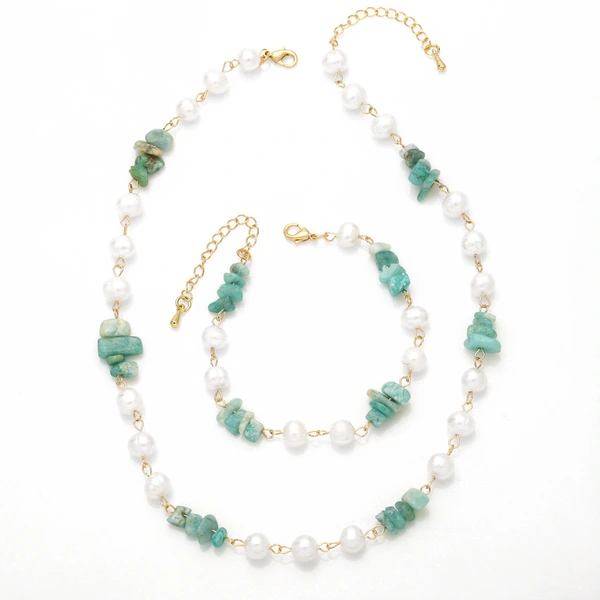 Conjunto de joyería de nicho de alta gama con collar y pulsera de perlas de grava, estilo europeo y americano, NKB511, liquidación 2024