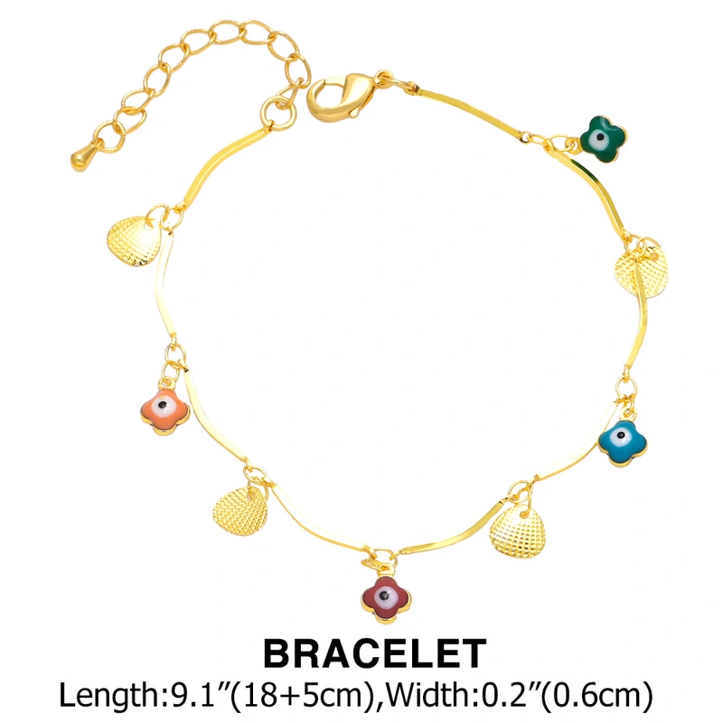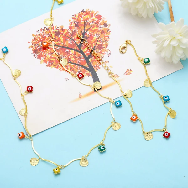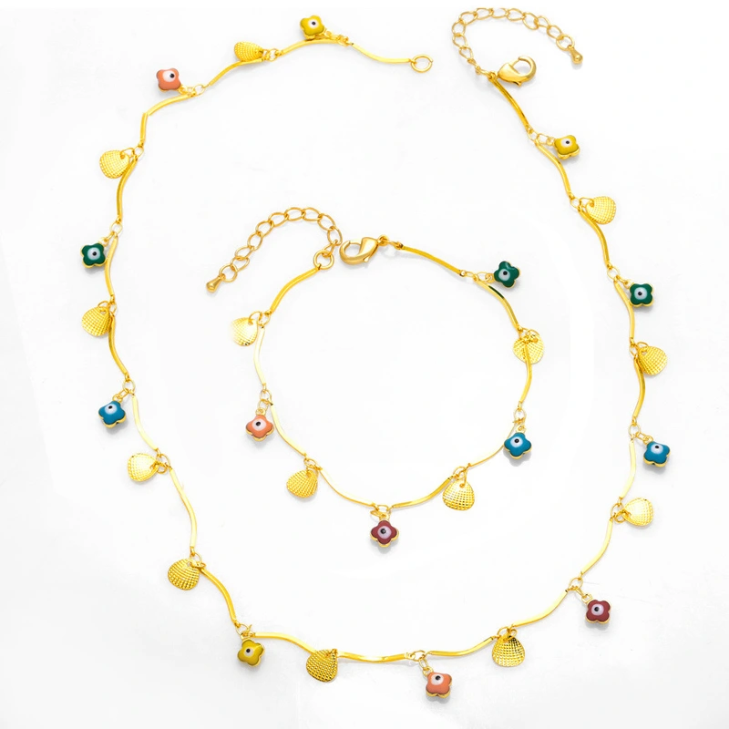 Conjunto de collar y pulsera con diseño de nicho de estilo europeo y americano con gotas de aceite de colores y ojo de diablo NKB535
