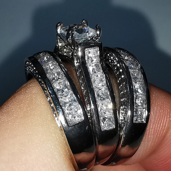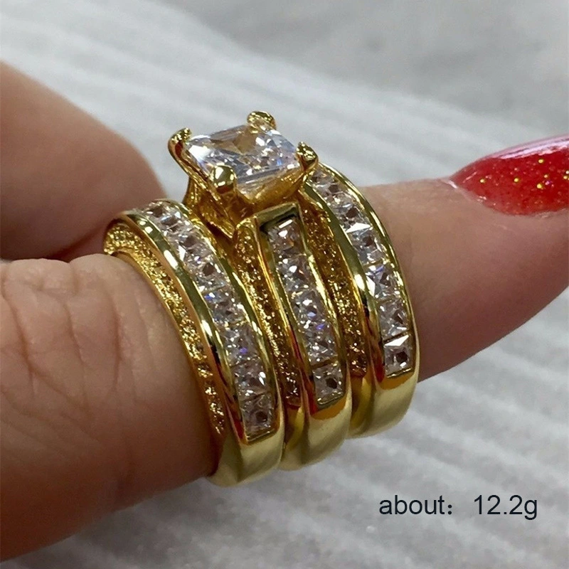 Conjunto de tres anillos de circonita con microincrustaciones, de lujo, para parejas, joyería europea y americana.