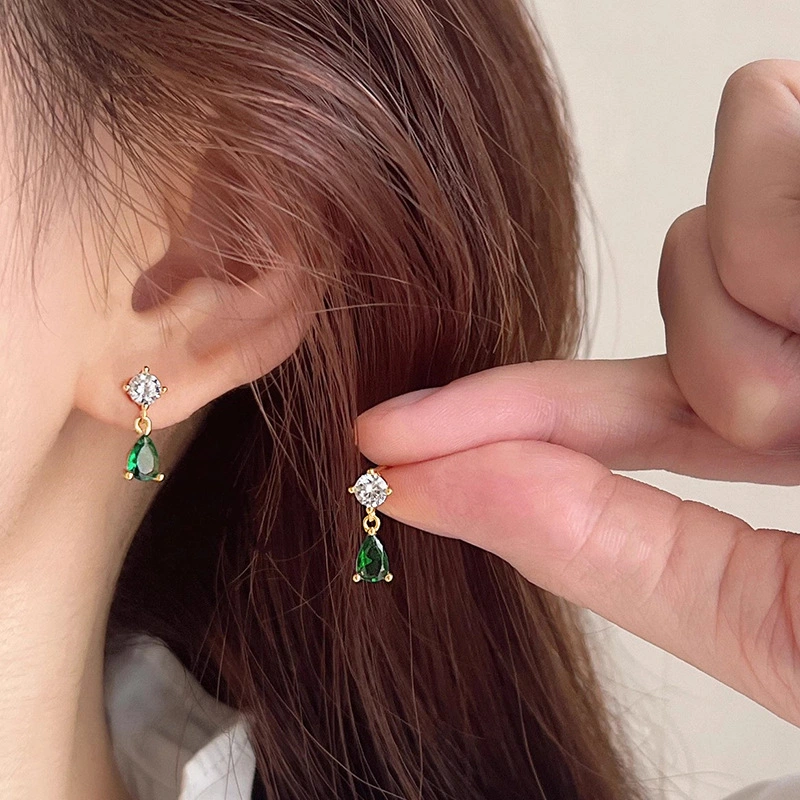 Pendientes de circonita con forma de gota de aceite y cereza, de estilo europeo y americano, muy populares en joyería, ERQ84.