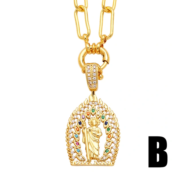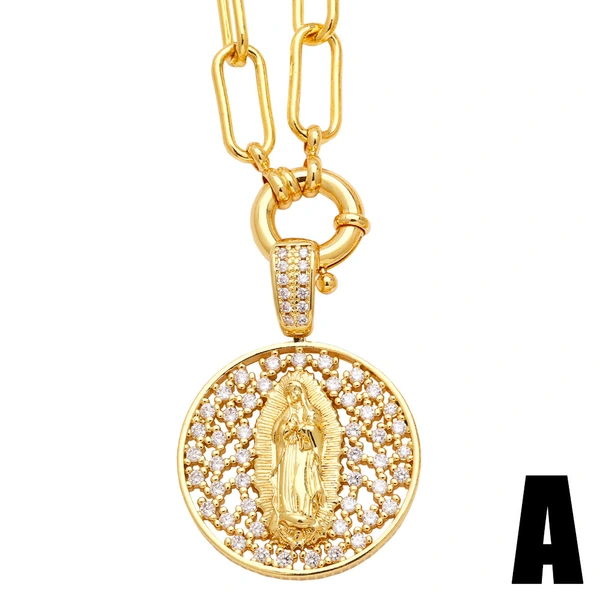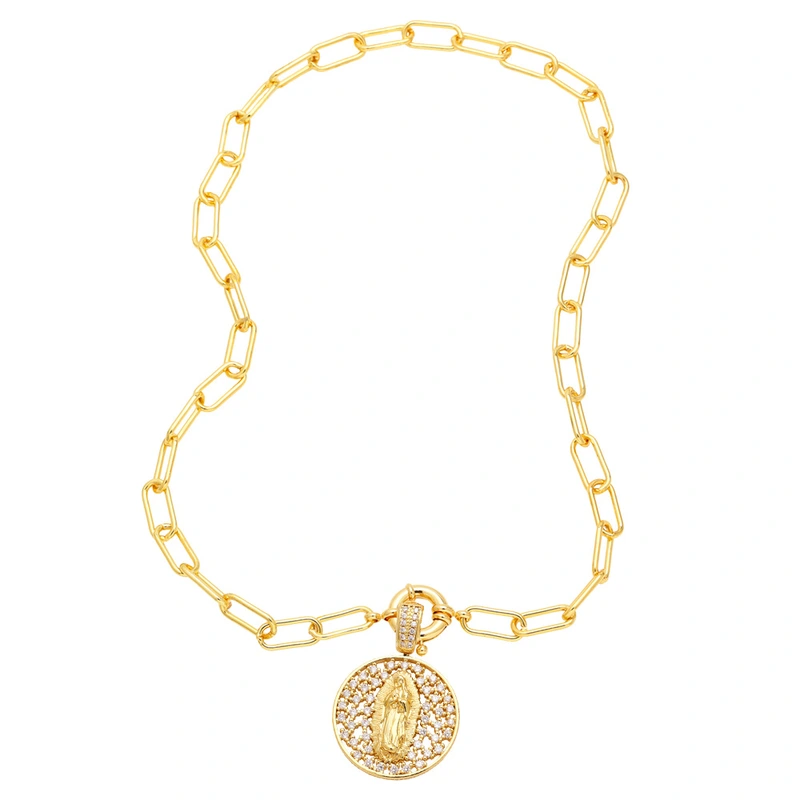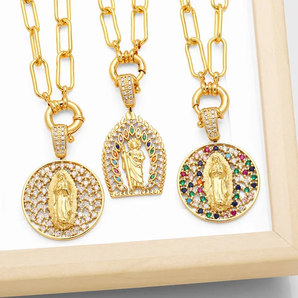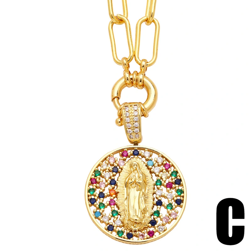 Gran oferta en Europa y América: collar de circonitas de color diamante para mujer, colgante creativo de la Virgen María, cadena de clavícula NKB834.