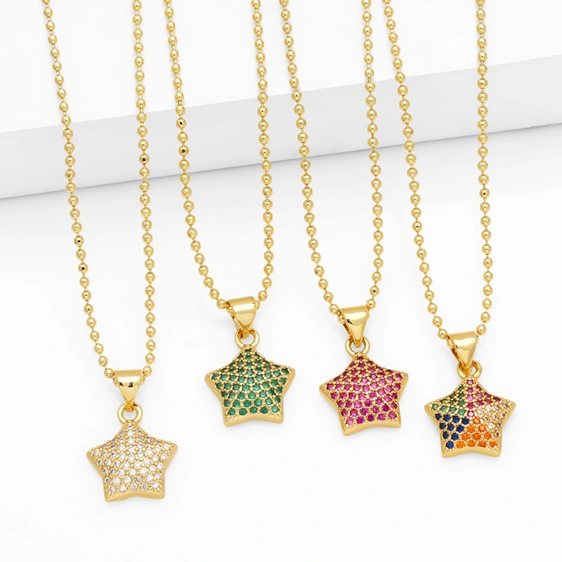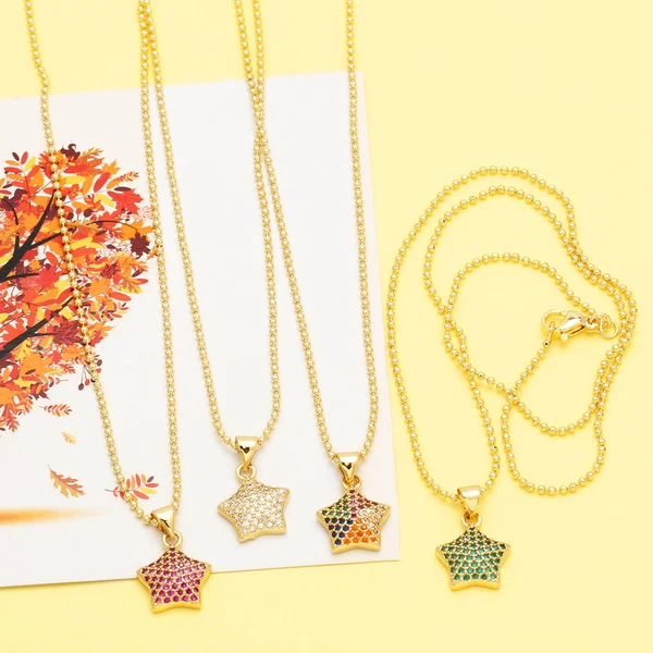 Gran oferta en Europa y América: nuevo collar de estrella de cinco puntas con colgante de diamantes creativo, collar para mujer, joyería chapada en oro, nkq09.