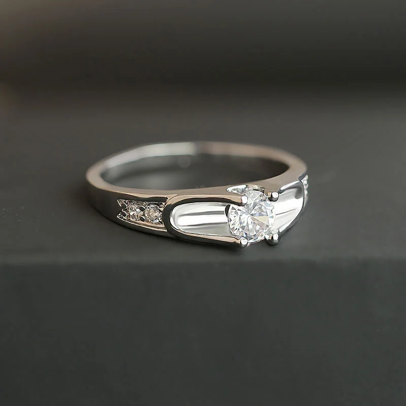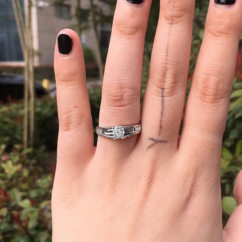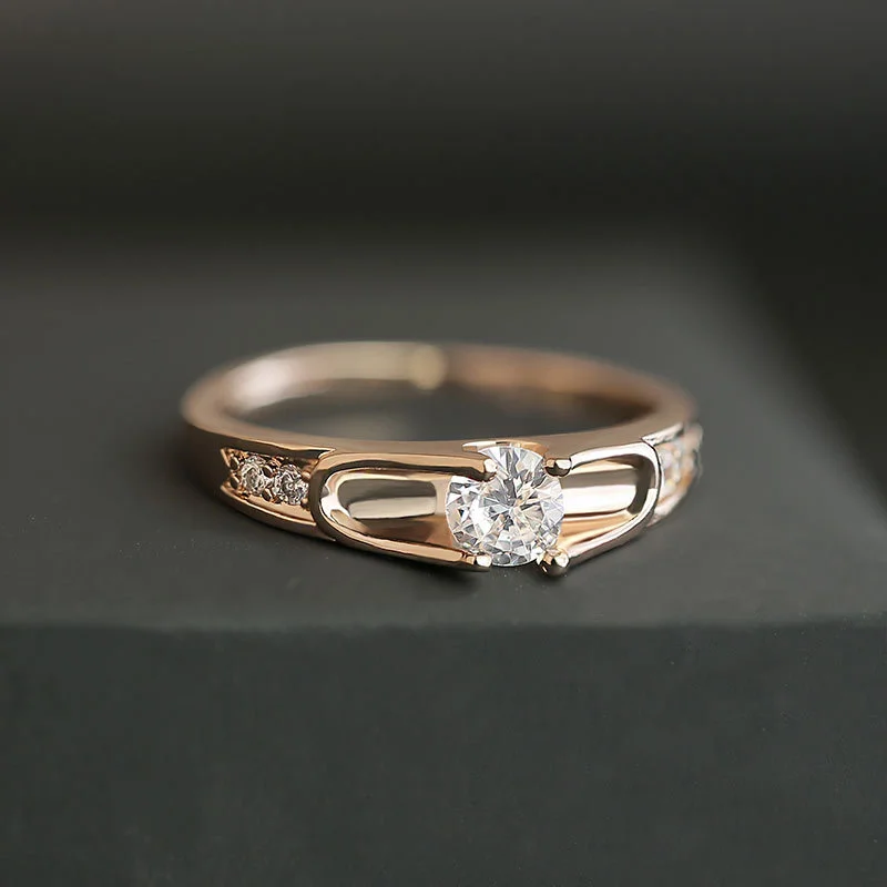 Anillo clásico de estilo celebridad con microincrustaciones, combinable con todo, con circonita de seis garras, anillo de bodas de lujo ligero de estilo europeo y americano.