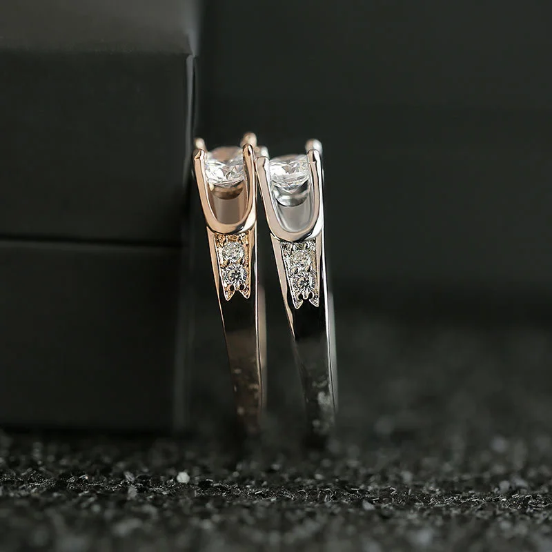 Anillo clásico de cuatro garras con microincrustaciones de circonita de imitación para mujer, anillo de doble fila con brazo giratorio de dos colores, anillo de compromiso y boda para mujer.