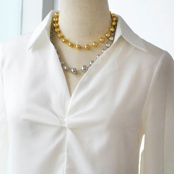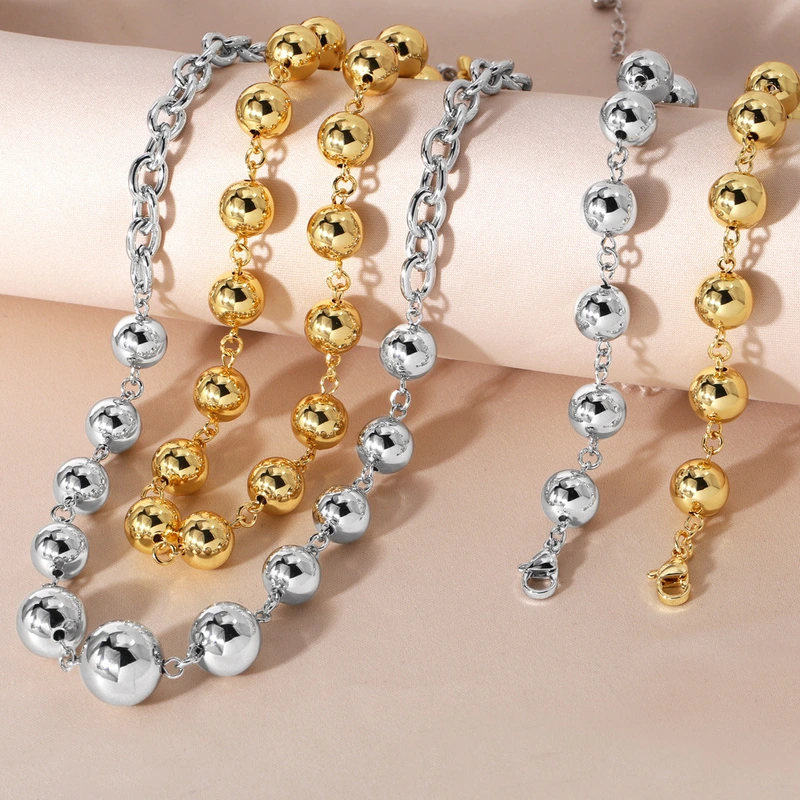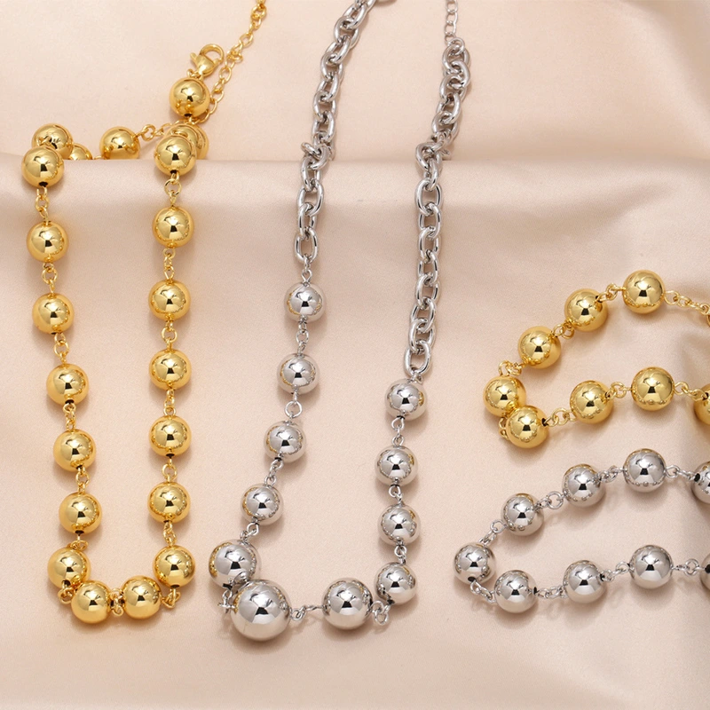 Joyería europea y americana, collar de cuentas redondas de hip-hop, pulsera unisex, accesorios de cadena de clavícula retro de moda nkn09