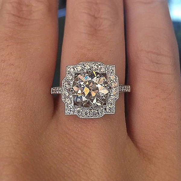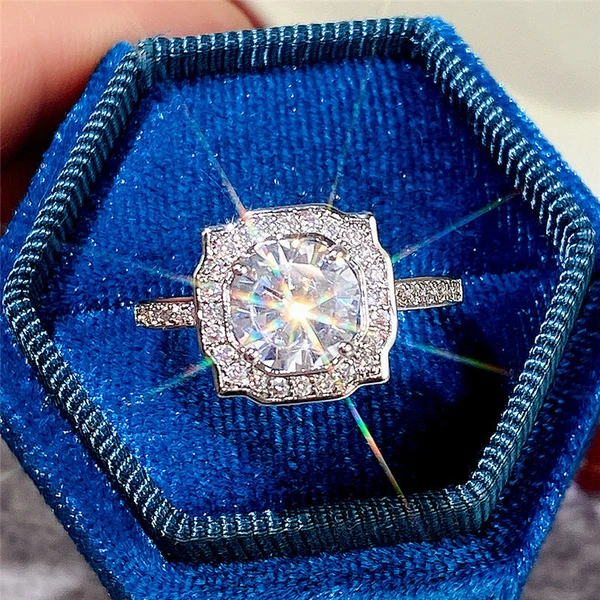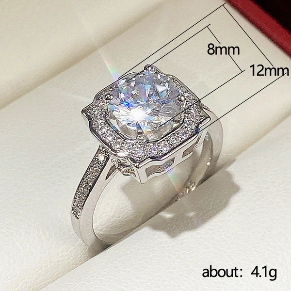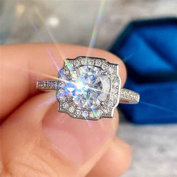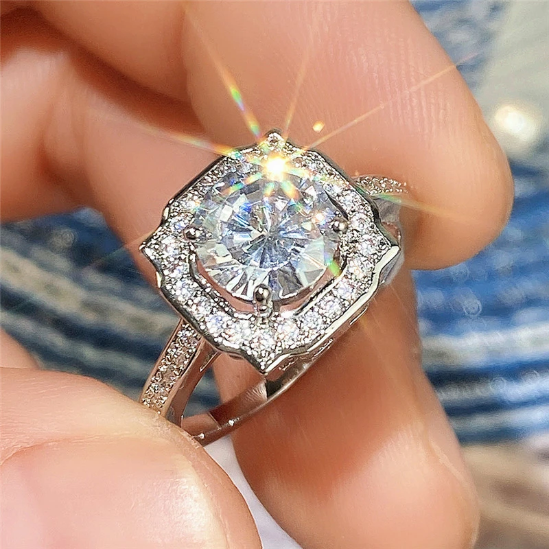 Anillo clásico de estilo celebridad con microincrustaciones, combinable con todo, con circonita de seis garras, anillo de bodas de lujo ligero de estilo europeo y americano.
